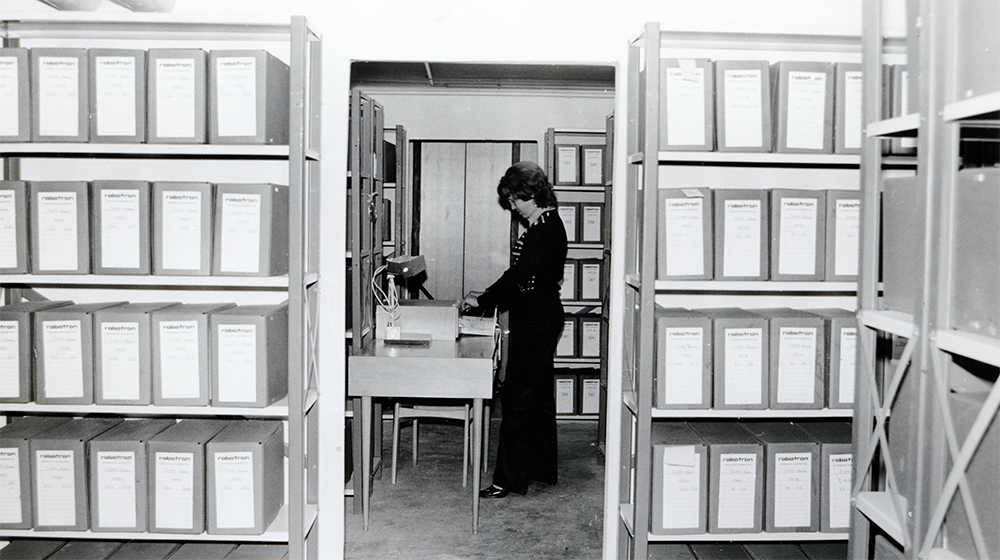 Frau Struy leitete ab Mitte der 1970er Jahre das Archiv und arbeitete u. a. im Magazin des Wohnheims 7